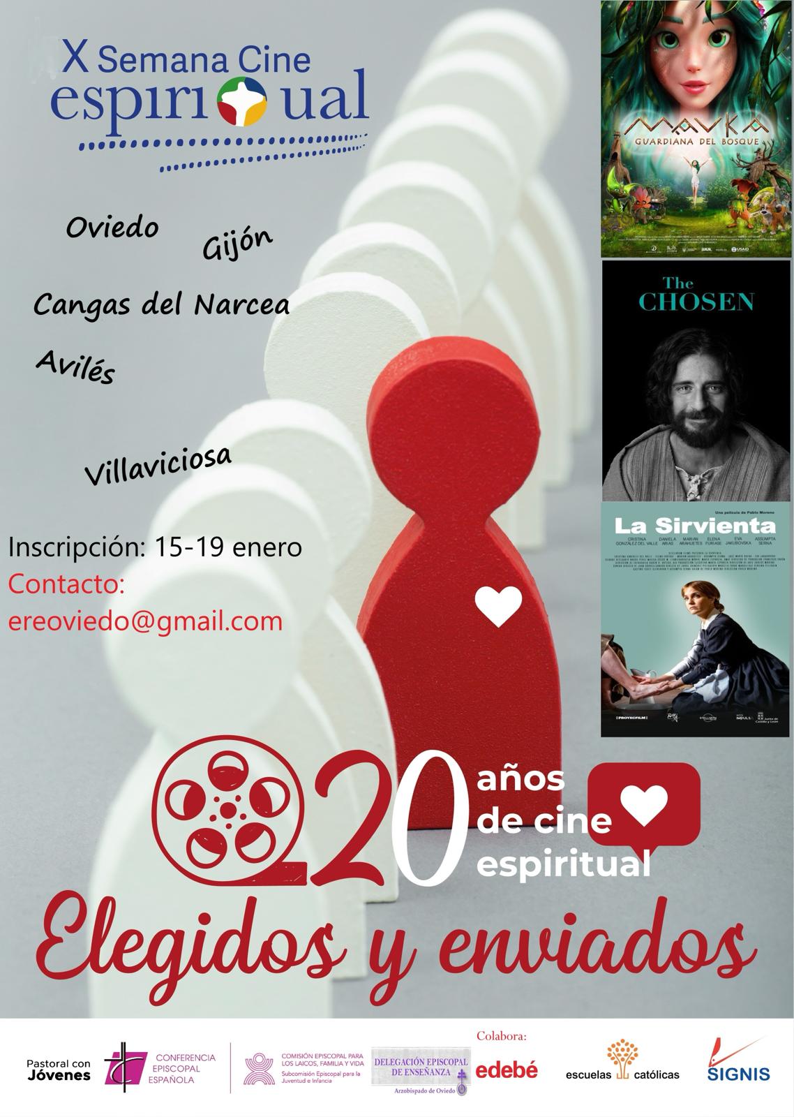 El próximo martes, 5 de marzo, dará comienzo la X Semana de Cine Espiritual en la diócesis, en feliz coincidencia con los veinte años de vida que cumple esta iniciativa en España. Una década presentando a los escolares asturianos películas que destacan por su apertura a la trascendencia, por plantear cuestiones existenciales que el hombre se hace desde que es hombre. Películas religiosas, o no, pero todas con una trama y unas propuestas que ayuden, especialmente a los niños y a los jóvenes, a formar una conciencia abierta a la fe. Organizada en la diócesis, desde sus inicios, por la Delegación Episcopal de Enseñanza, este año ha logrado reunir a 2.412 alumnos, con 160 profesores, distribuidos todos ellos en cinco sedes (Oviedo, Gijón, Avilés, Villaviciosa y Cangas del Narcea).