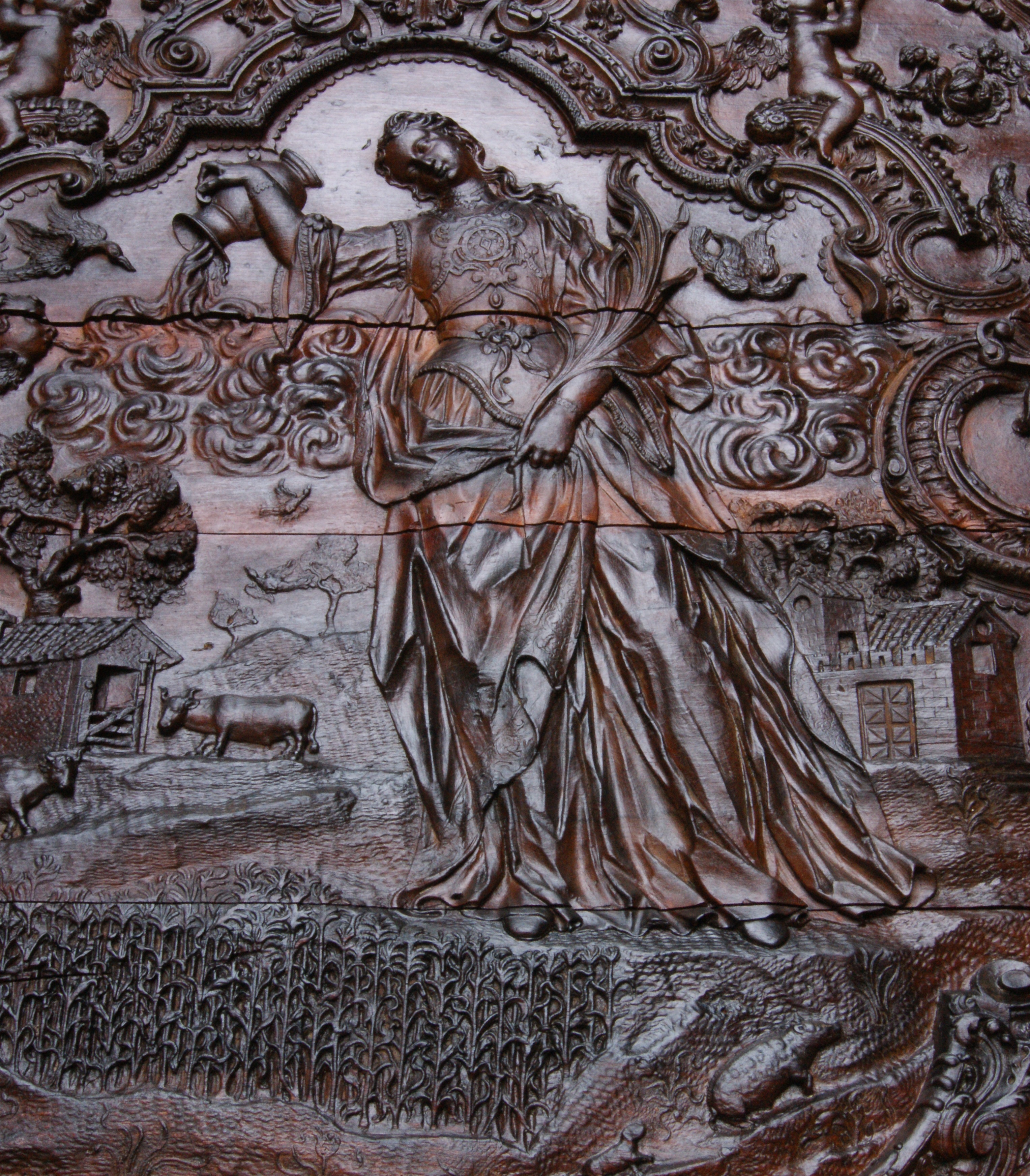 Santa Eulalia regando los campos, en la puerta principal de la Catedral