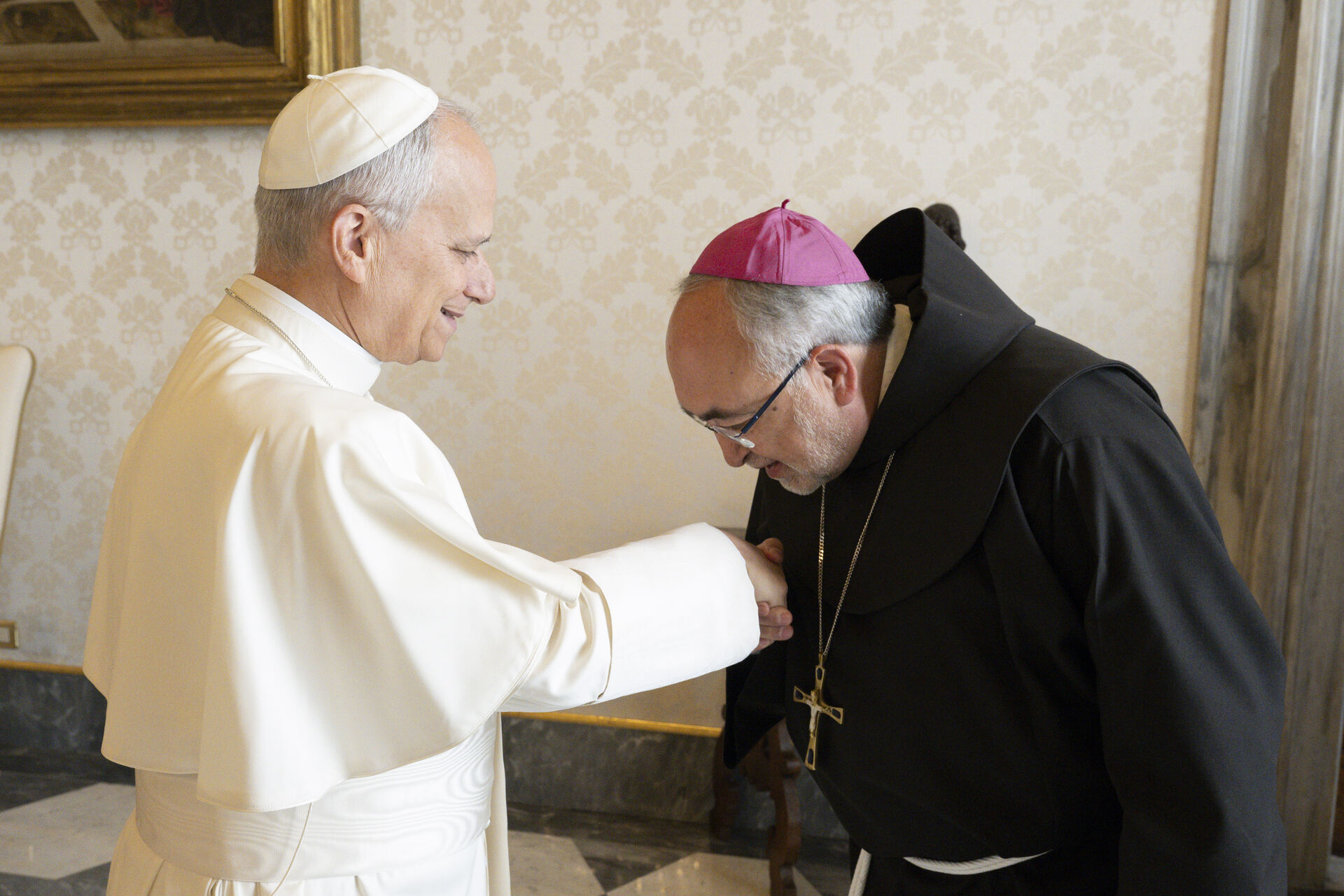 El Papa León XIV ha recibido a la Comisión Ejecutiva de la Conferencia Episcopal Española (CEE) esta mañana del 17 de noviembre, en un encuentro que ha durado alrededor de una hora. Tal y como se ha informado desde la Conferencia Episcopal Española, Mons. Luis Argüello, Arzobispo de Valladolid y presidente de la CEE, ha expresado la «alegría» de la Comisión Ejecutiva tras el encuentro con el Santo Padre, que se solicitó tras su nombramiento el pasado 8 de mayo y se confirmó a inicios de este curso 2025/2026. Además, la CEE ha hecho entrega a León XIV de una edición especial de la Biblia con motivo de su visita.