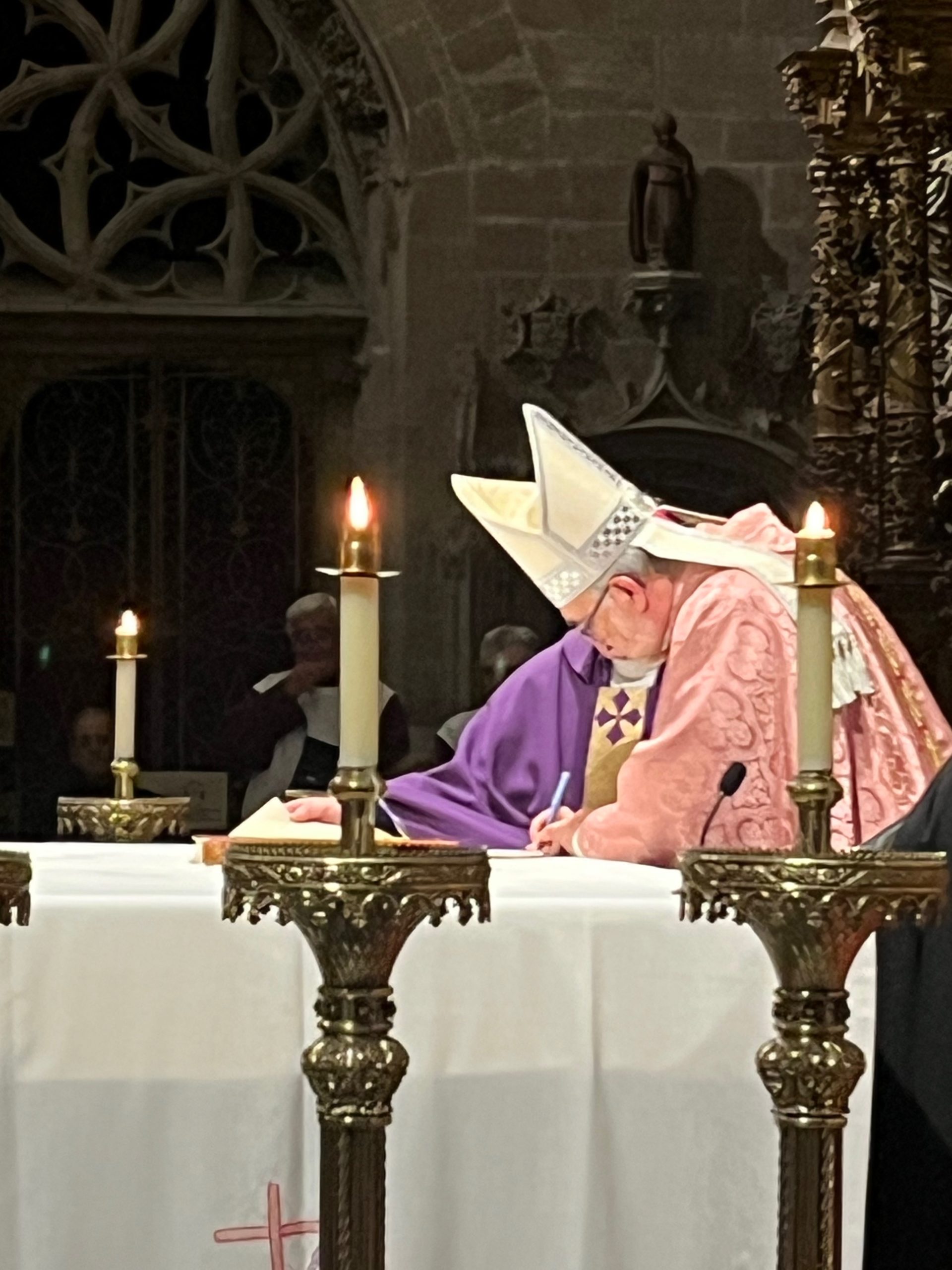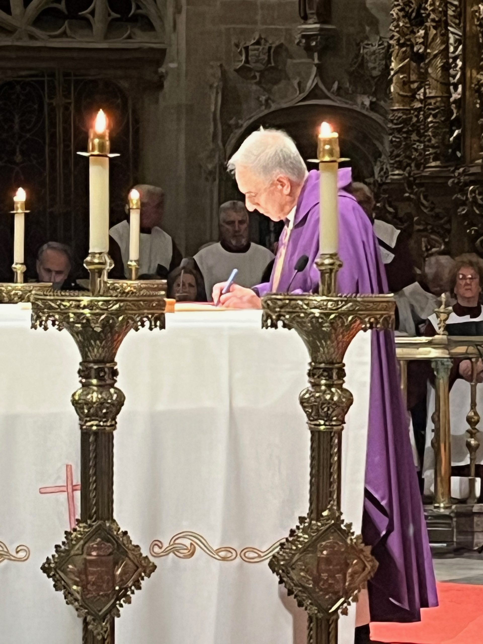 Una vez colocadas las reliquias y bendecida la arqueta, se levantó el acta correspondiente para dejar memoria de lo realizado en esta fecha, documento que fue firmado por el Arzobispo, el Deán de la Catedral, D. Benito Gallego, y el Secretario del Cabildo, D. Manuel Ángel Acebal. Tras este momento, Mons. Sanz Montes cerró la arqueta y continuó con la celebración de la Eucaristía.