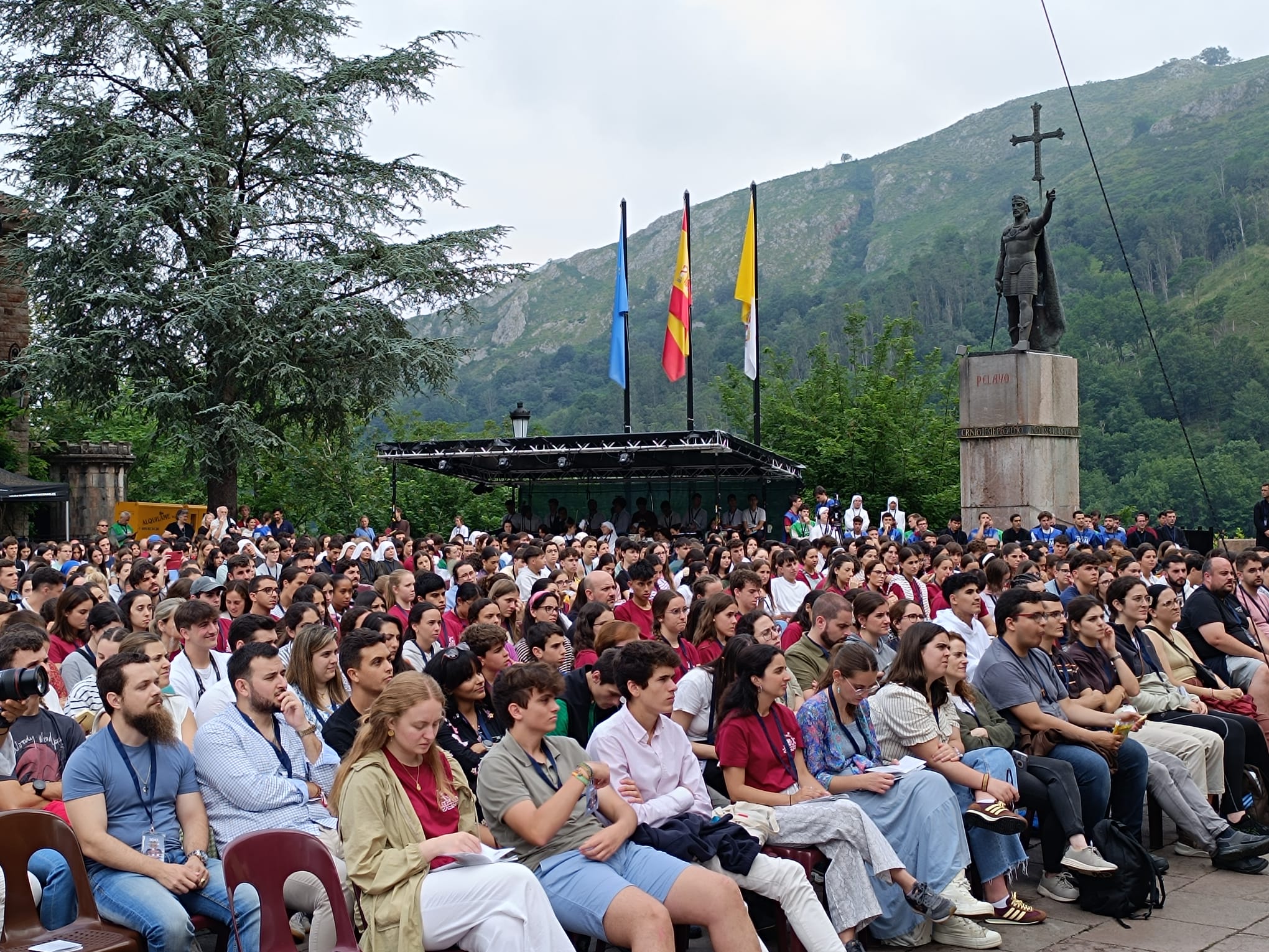 Más de 1.700 jóvenes inscritos junto con un buen puñado de espontáneos que se fueron dejando caer a lo largo del fin de semana aprovechando que el evento era gratuito, jóvenes sacerdotes y religiosas, algunas de congregaciones de muy reciente creación. Así transcurrió, entre momentos de fiesta y baile, música, pero también oración, silencio y formación, la segunda edición de la Jornada Eucarística Mariana Juvenil (JEMJ) en Covadonga.