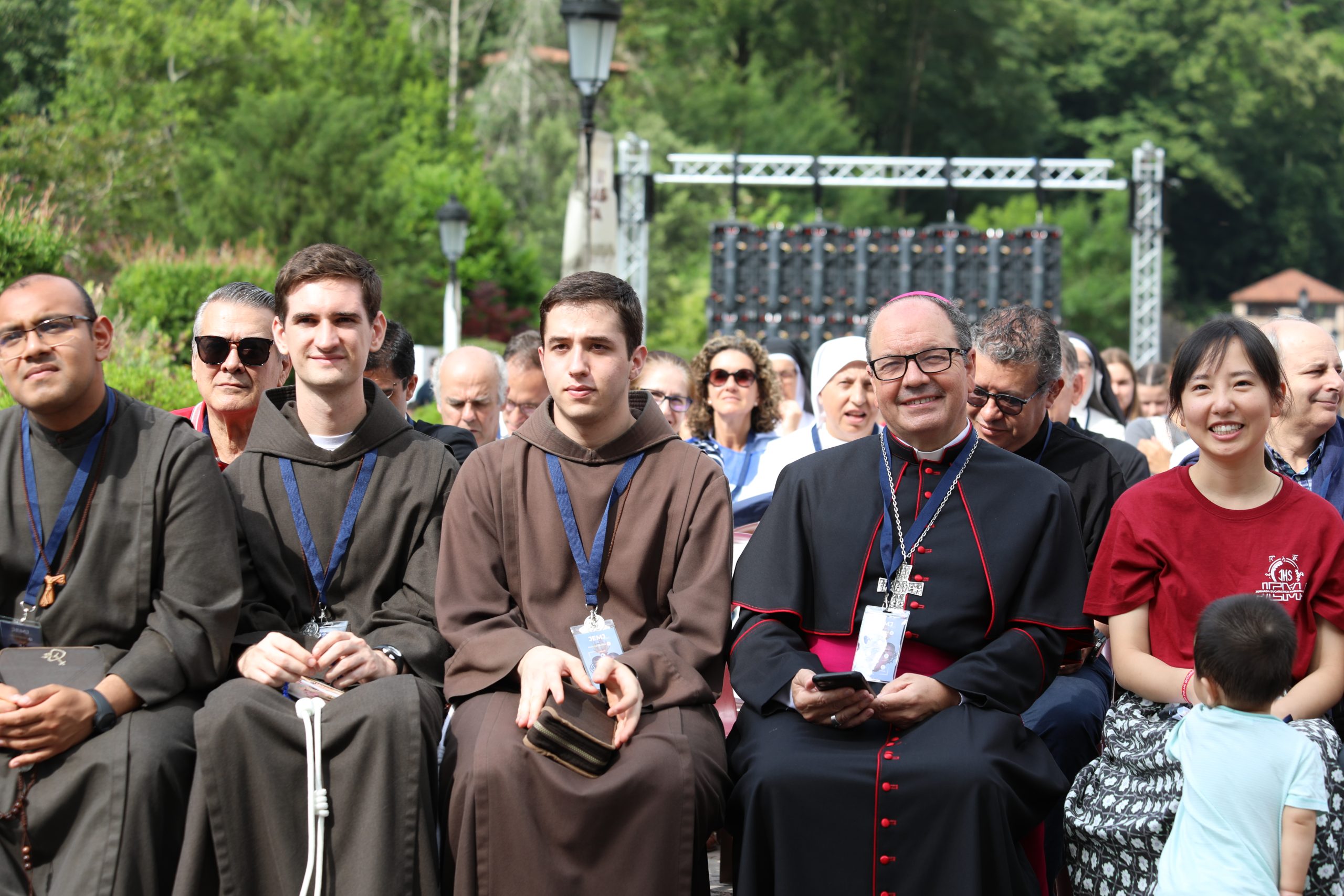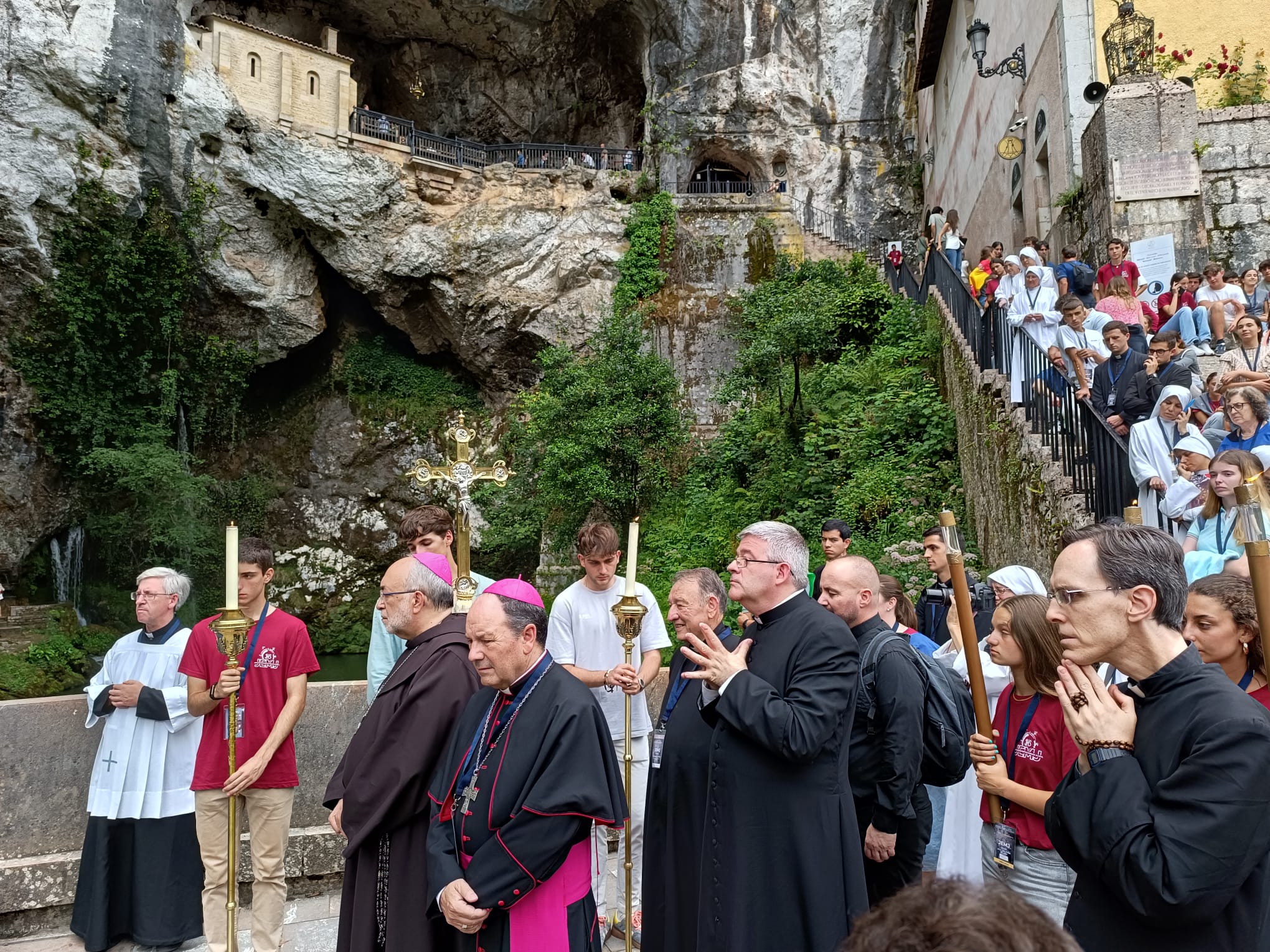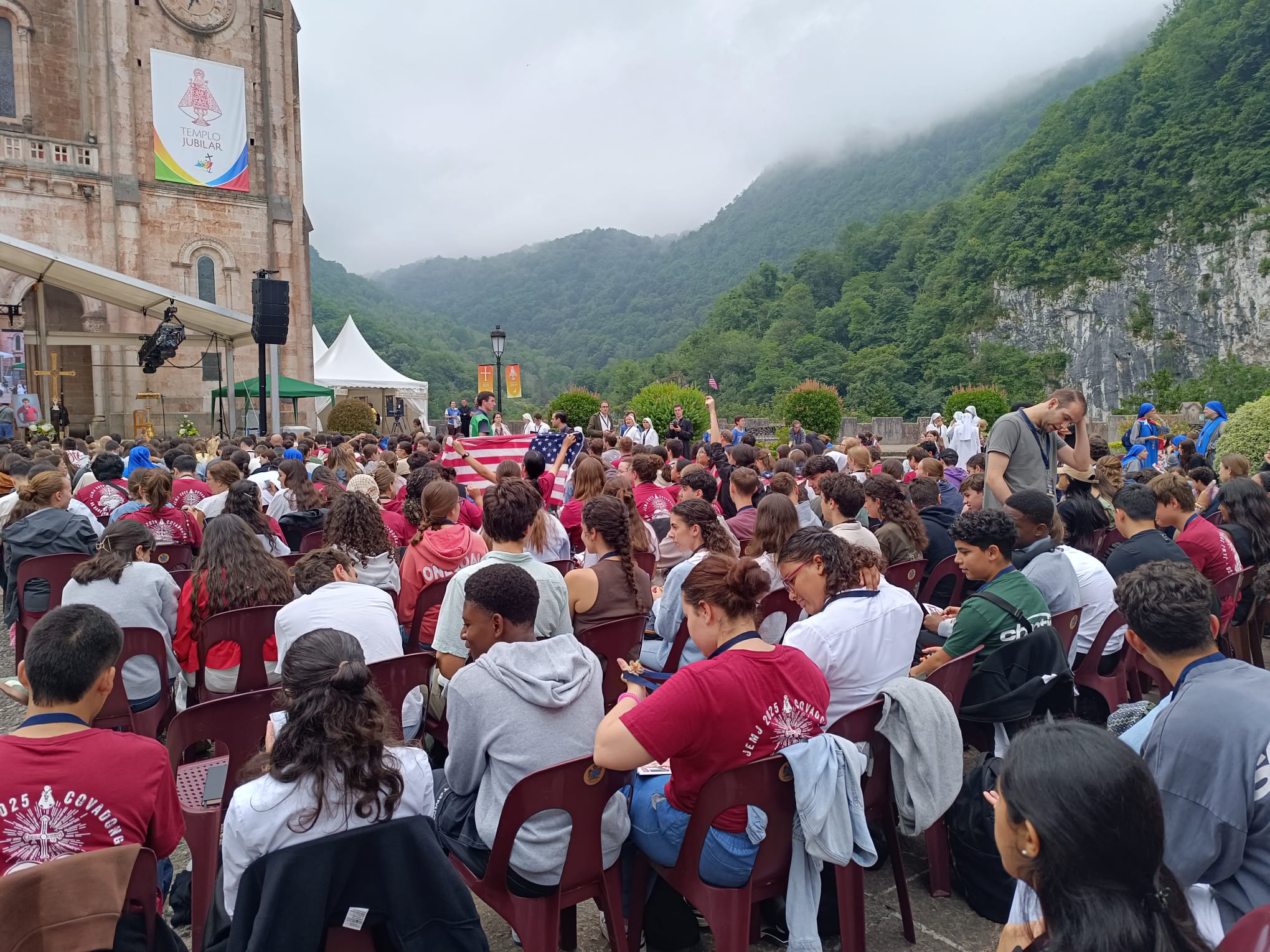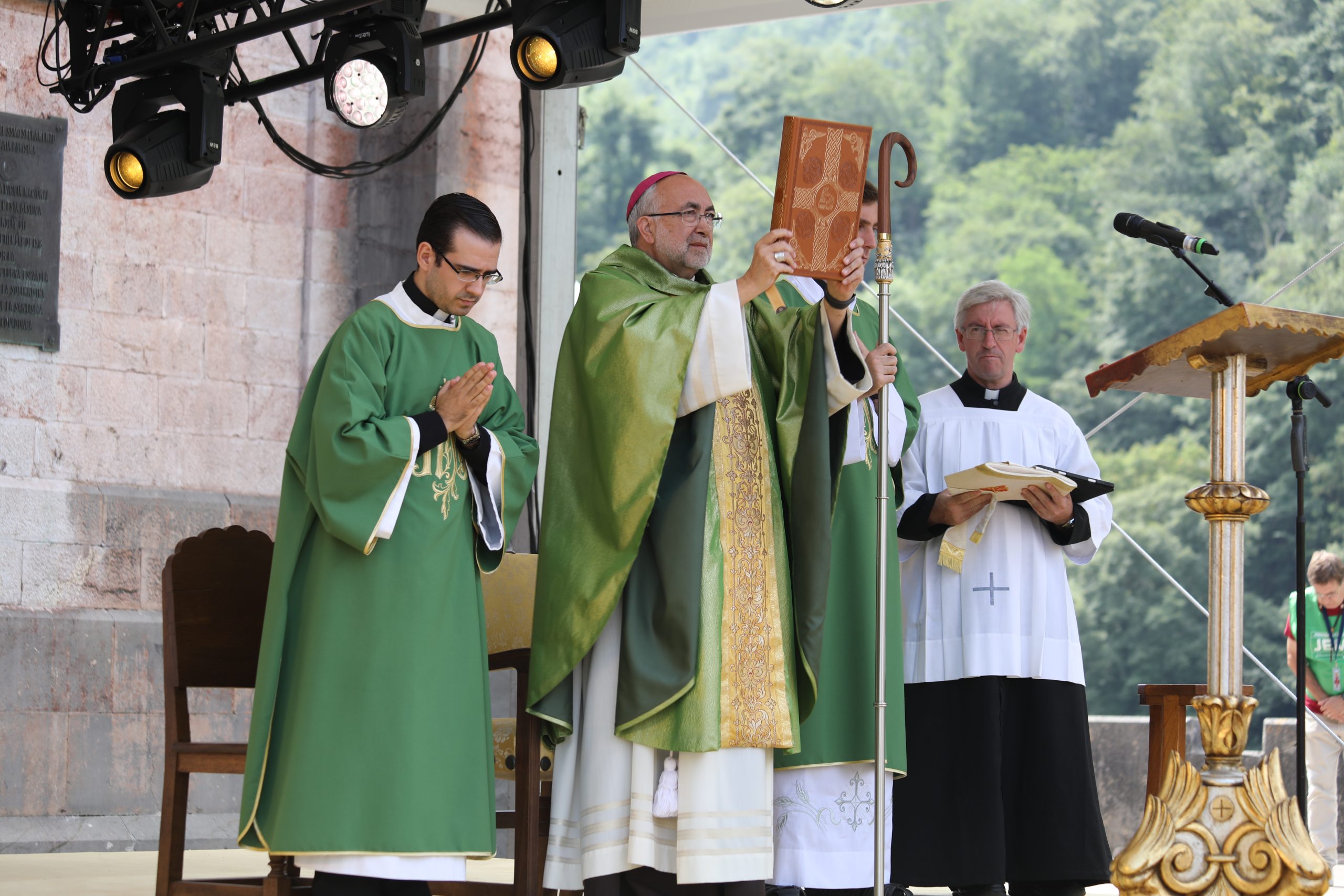 Hasta 19 nacionalidades diferentes se dieron cita en el encuentro, donde fueron muy visibles las banderas norteamericana, italiana, francesa e irlandesa. El Obispo de Vitoria, Mons. Juan Carlos Elizalde, presidió la eucaristía del primer día, el viernes, mientras que el Abad del Santuario, D. David Cueto lo hacía el sábado y el Arzobispo de Oviedo, Mons. Jesús Sanz, lo hacía el último día, el domingo. En esa eucaristía final, bajo un potente sol que estuvo presente en casi todo momento de este encuentro, Mons. Sanz recordó que en esta JEMJ se hacía un llamamiento a «reconquistar todo aquello que vale la pena», y a pesar que que «estamos ante un inmenso desafío, como aquellos primeros cristianos con un Imperio decadente o los que aquí en Covadonga respondieron a la invasión musulmana. Las corrupciones y decadencias pueden ser otras, como otros son hoy los turbantes que nos turban, pero siempre estaremos ante el reto de anunciar a Cristo como hizo María e hicieron los santos de cada época. Queremos ser hijos de Dios, hijos de la Iglesia e hijos de nuestra época. Así hemos aprendido de ese joven beato que próximamente será canonizado: Carlo Acutis. Impresiona verle con zapatillas deportivas, chandal y gorra con visera. Metido en los caminos de internet, con los rizos de sus cabellos al viento y a la espalda su mochila. Pero impresiona mucho más la madurez cristiana en su amor a la Eucaristía y a nuestra Señora, que le permitió afrontar una leucemia en la que testimonió rendidamente su abandono en las manos providentes de Dios que le creó, le esperó y le amó inmensamente». «Somos enviados –dijo– desde un encuentro con Jesús que se ha hecho vocación concreta en la Iglesia. Familias cristianas que se forman desde el amor fiel y duradero entre hombre y mujer, abiertos a la vida con la que Dios bendice ese hogar. Sacerdotes que desde el sí al Buen Pastor se hacen padres del pueblo que la Iglesia les confía anunciando la Palabra del Señor de la que son los primeros oyentes y santificando con los sacramentos que reparten sus pequeñas manos sabiéndose los primeros mendigos de esa gracia. Religiosas que siguen al Señor desde el carisma de una comunidad expresando con su entrega y amor lo que significan preciosamente sus votos consagrados. De esta JEMJ nacerán familias cristianas, vocaciones sacerdotales y a la vida religiosa». Y recordó que «como misioneros de la esperanza, con un corazón nuevo, seremos el fermento en la masa de un mundo que nos espera. Frente a la violencia que desangra a la humanidad, seremos instrumentos de la Paz que no engaña. Con la bondad que aprendemos del Corazón de Dios, seremos bienaventuranza en medio de la perfidia que envilece el alma. Frente al mensaje zafio y bronco de tanta fealdad testimoniaremos la belleza que purifica la mirada y llena el corazón de la armonía de las cosas santas. Un imperio decadente y una reconquista pendiente en donde Jesús cuenta con nosotros porque Él nos creó, nos esperó, nos ama y nos envía. Por eso, al término de esta segunda JEMJ no estamos simplemente clausurando una hermosa vivencia de tres días, sino poniéndonos en camino como testigos de la esperanza cristiana preparando ya la siguiente cita». Homilía completa.