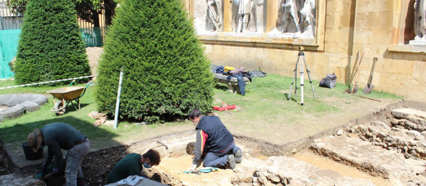 Estamos realizando una excavación arqueológica en el Jardín de los Reyes Caudillos. Estos trabajos tienen una finalidad técnica, que es instalar el pararrayos de la torre de la catedral. Aprovechando esta circunstancia, estamos investigando y documentando el pasado de toda esa parte de la ciudad que antes se llamaba la rinconada de Santa María del Rey Casto y de la que tenemos muy poca información arqueológica.